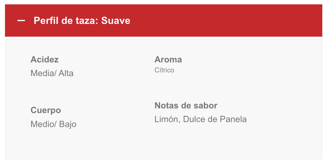 Producido por más de 34.000 caficultores, ofrece un perfil suave y delicado, con notas de limón y dulce de panela. Es ideal para quienes buscan un café con aroma suave, alta acidez y cuerpo medio, logrando una taza fresca, equilibrada y aromática.